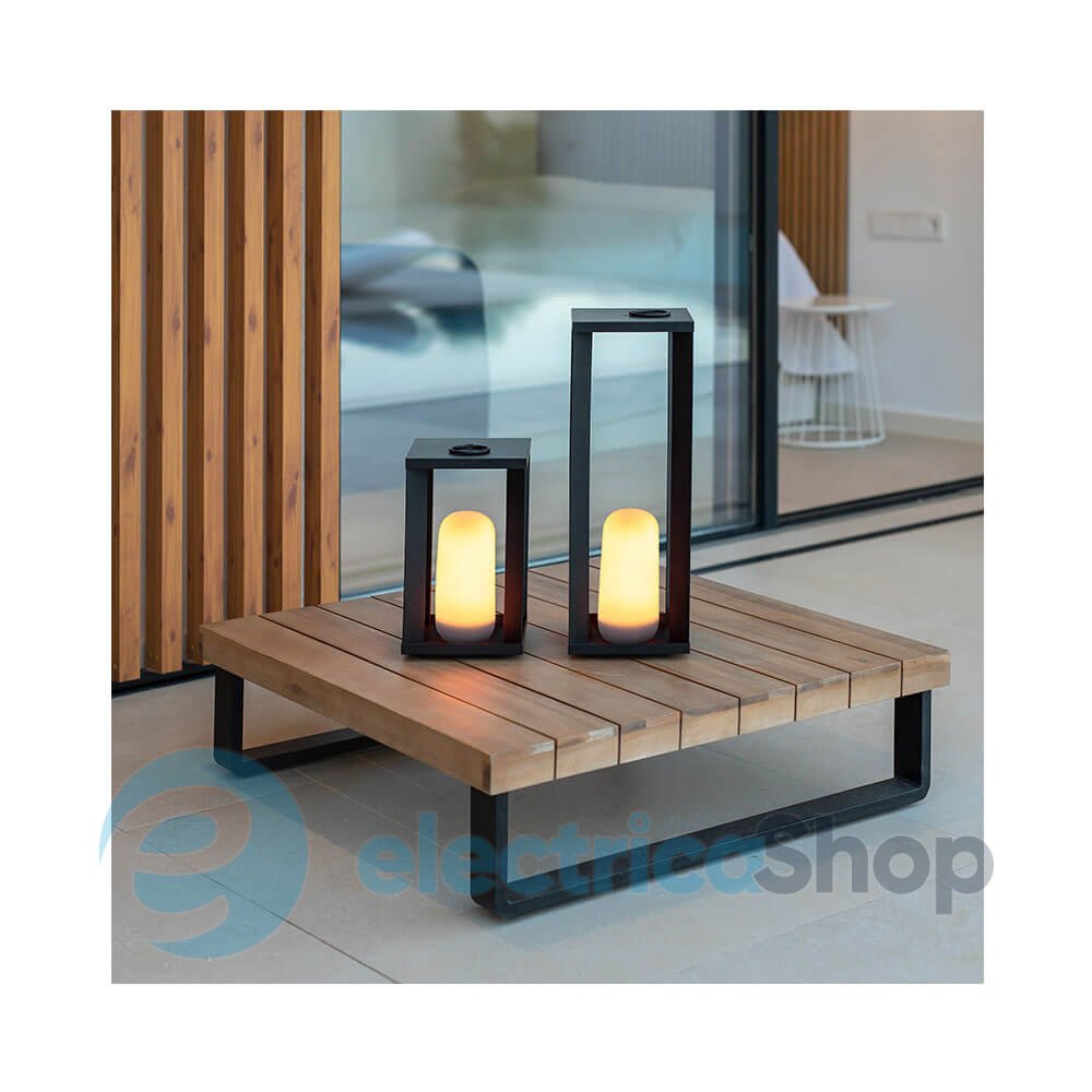Уличный переносной светильник NEWGARDEN Siroco 30 (LUMSRC030BXWLNW) изготовлен из металла, дополнен светодиодной лампой. Пульт ДУ позволяет контролировать уровень светового потока, имеет переключение в "режим пламени", что создаст эффект настоящей свечи на ветру.