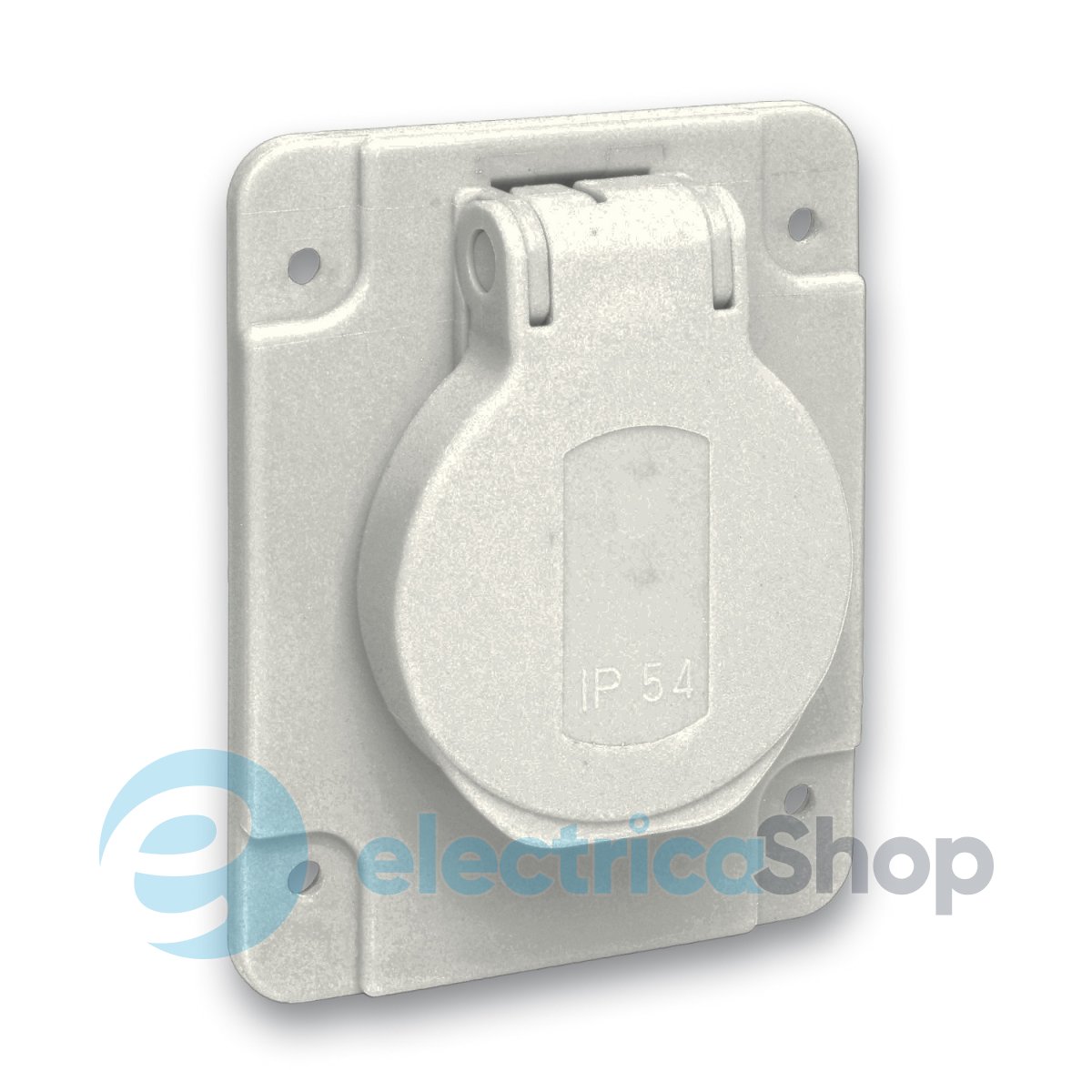 Промислова розетка SСHUKO Kaedra Box з гвинтами, що не випадають. Конфігурація полюсів: SСHUKO 2P+E, номінальний струм 16А, робоча напруга 250V змінного струму. Ступінь захисту : IP54. Частота 50Гц чи 60Гц. Положення контактів за годинниковою стрілкою - 6 год.