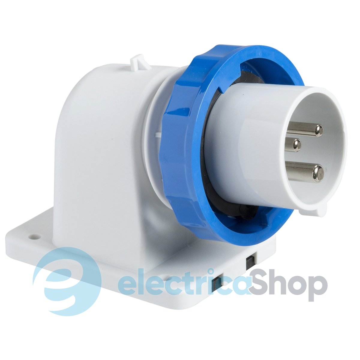 Промислова вилка панельна Kaedra Box з гвинтами, що не випадають. Конфігурація полюсів: 2P+E, номінальний струм 32А, робоча напруга 250V змінного струму. Ступінь захисту : IP67. Частота 50Гц чи 60Гц. Положення контактів за годинниковою стрілкою - 6 год.