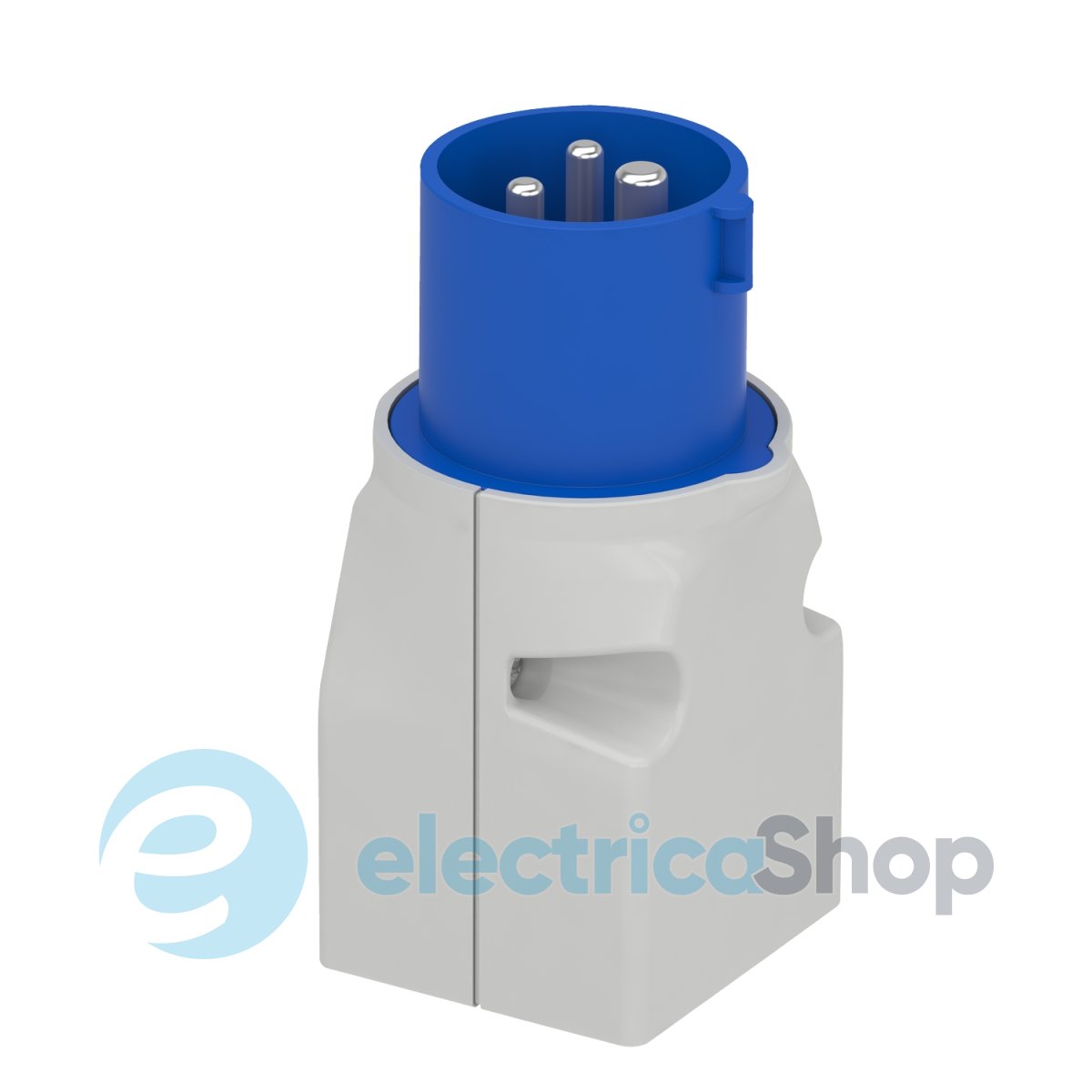 Промислова Адаптер (розетка SСHUKO-штекер CEE) Kaedra Box з гвинтами, що не випадають. Конфігурація полюсів: SСHUKO 2P+E, номінальний струм 16А, робоча напруга 230V змінного струму. Ступінь захисту : IP20. Частота 50Гц чи 60Гц. Положення контактів за годинниковою стрілкою - 6 год.