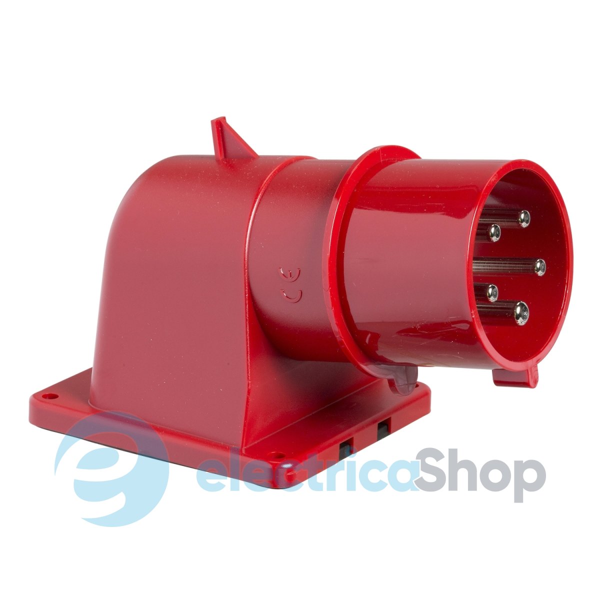 Промислова вилка панельна Kaedra Box з гвинтами, що не випадають. Конфігурація полюсів: 3P+N, номінальний струм 32А, робоча напруга 380V змінного струму. Ступінь захисту : IP44. Частота 50Гц чи 60Гц. Положення контактів за годинниковою стрілкою - 6 год.