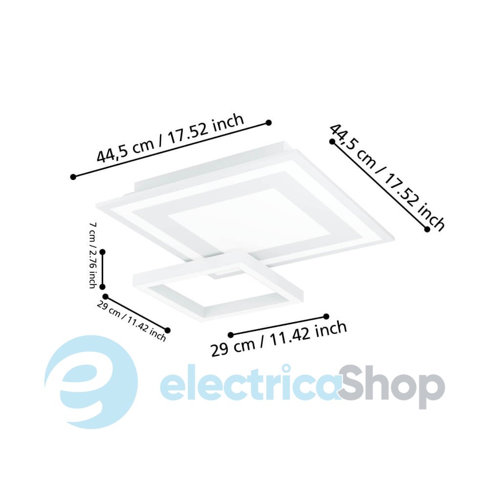 Потолочный светильник Eglo SAVATARILA-Z 900023 хорошо впишется в интерьер, оформленный в современном стиле. Изготовлен из стали и пластика, положение одной из рамок можно менять, поворачивая. Управление светом возможно с помощью пульта ДУ и через приложение. Есть функция RGB.