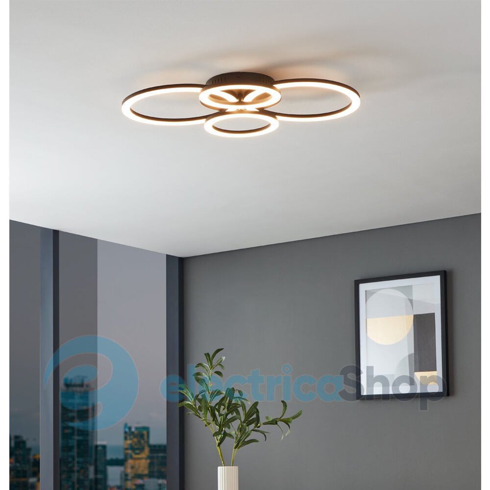 Потолочный светильник Eglo PARRAPOS-Z 900319 хорошо впишется в интерьер, оформленный в современном стиле. Изготовлен из стали и пластика, положение одной из рамок можно менять, поворачивая.