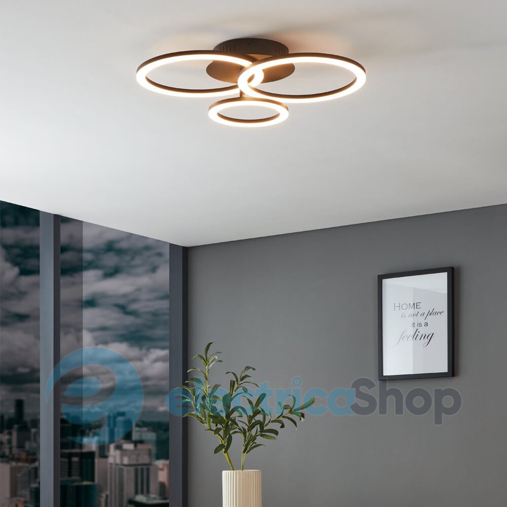 Потолочный светильник Eglo PARRAPOS-Z 900321 хорошо впишется в интерьер, оформленный в современном стиле. Изготовлен из стали и пластика, положение одной из рамок можно менять, поворачивая.