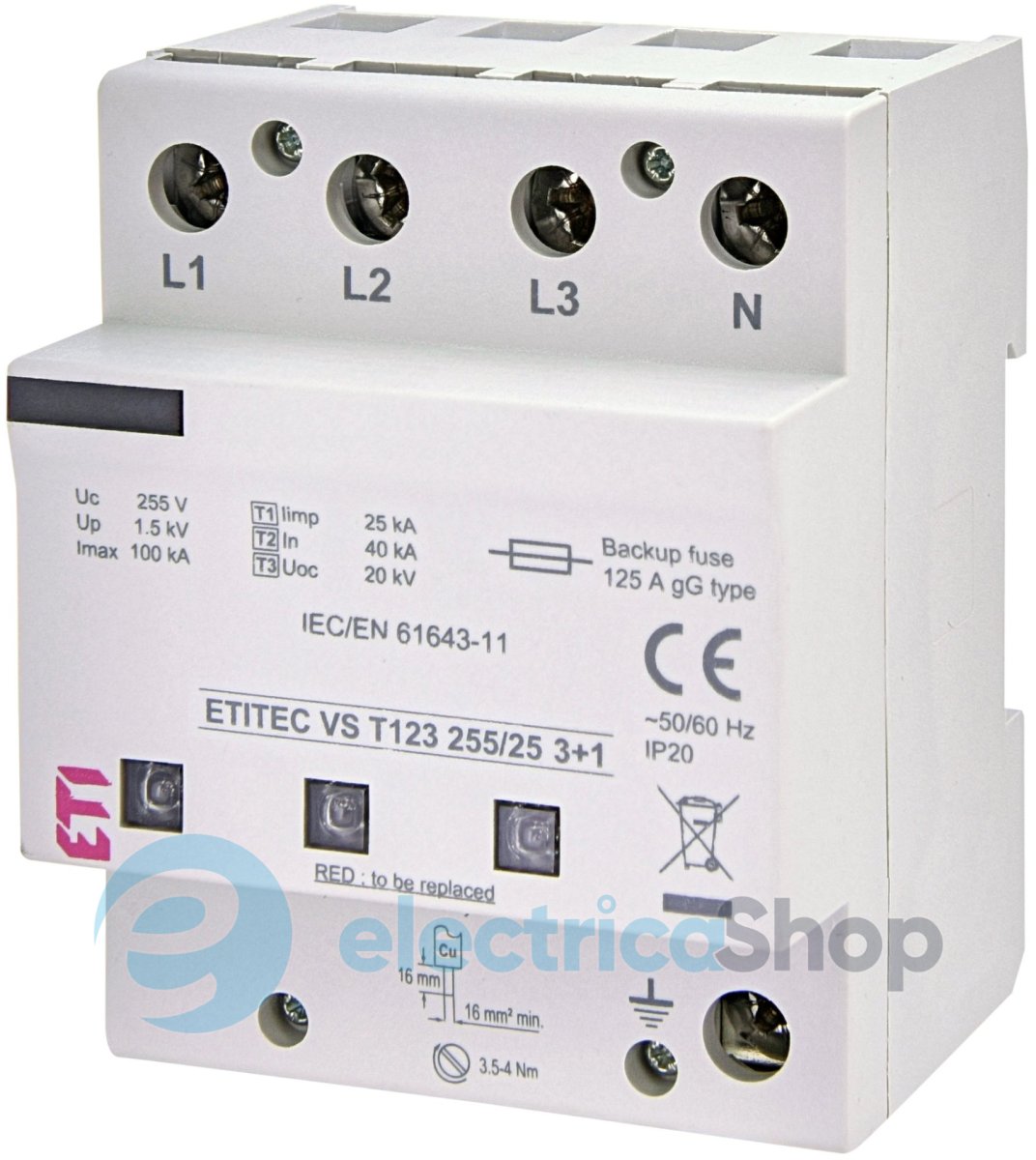 Ограничитель перенапряжения тип I+II+III, ETITEC VS T123 255/12,5 (3+0) ETI 2442923