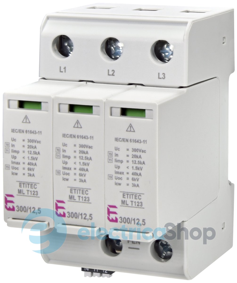 Ограничитель перенапряжения тип I+II+III, ETITEC ML T123 300/12,5 (1+0, 1p, TNC) ETI 2440661