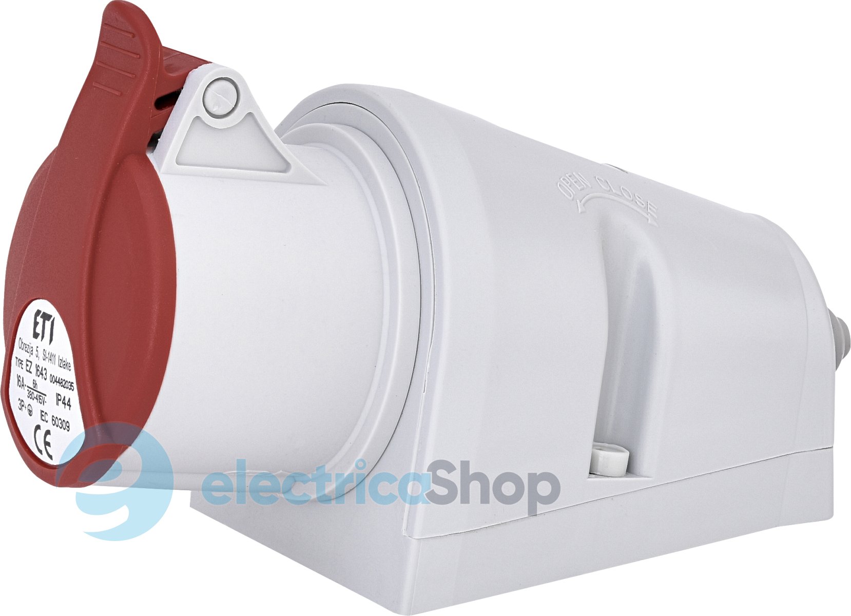 CEE Socket, EZ 1643, Ступінь захисту IP IP44, Кількість полюсів 3+PE, Номінальний струм (A) 16, Номінальна напруга (В) 400, Тип розетка вилка Розетка настінна, Модель/Виконання Відкритої установки , Максимальна сила струму 16 A, Сила струму відповідно до UL / CSA (для UL-виконання) A, Кількість полюсів 3 , Напруга відповідно до EN 60309-2 і колір 400 В (50+60 Гц) червона , Положення ключа в годинах / Орієнтація заземл. контакту (по цифербл. годинника) 6 h, Маркувальне забарвлення Червоний , Номер кольору Ral , Ступінь захисту IP IP44 , Спосіб підключення Гвинтова клема , Кабельний ввід , Матеріал Пластик , Тип монтажу/Тип кріплення Внутрішнє закріплення , Ізольований монтаж , Виконання для збройних сил