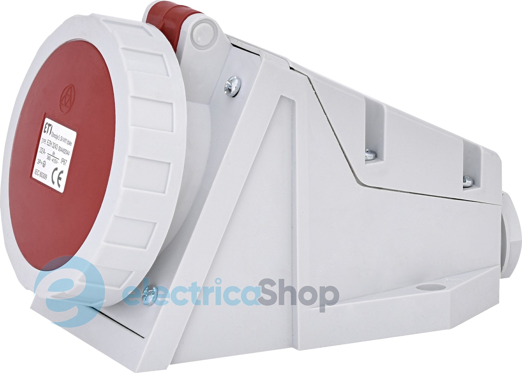 CEE Socket, EZH 3243, Ступінь захисту IP IP67, Кількість полюсів 3+PE, Номінальний струм (A) 32, Номінальна напруга (В) 400, Тип розетка вилка Розетка настінна, Модель/Виконання Відкритої установки , Максимальна сила струму 32 A, Сила струму відповідно до UL / CSA (для UL-виконання) A, Кількість полюсів 3 , Напруга відповідно до EN 60309-2 і колір 400 В (50+60 Гц) червона , Положення ключа в годинах / Орієнтація заземл. контакту (по цифербл. годинника) 6 h, Маркувальне забарвлення Червоний , Номер кольору Ral , Ступінь захисту IP IP67 , Спосіб підключення Гвинтова клема , Кабельний ввід , Матеріал Пластик , Тип монтажу/Тип кріплення Внутрішнє закріплення , Ізольований монтаж , Виконання для збройних сил