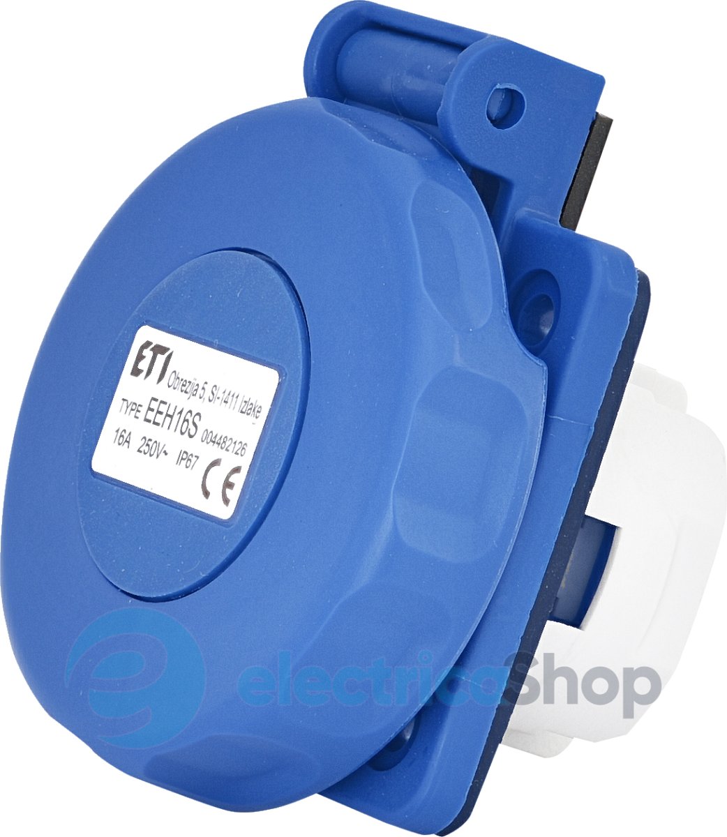 CEE Socket, EEH 16 S, Ступінь захисту IP IP67, Кількість полюсів 2, Номінальний струм (A) 16, Номінальна напруга (В) 400, Тип розетка вилка Вбудовувані розетки, Schuko, Призначення Аксесуари, Максимальна сила струму 16 A, Сила струму відповідно до UL / CSA (для UL-виконання) A, Напруга відповідно до EN 60309-2 і колір 230 В (50+60 Гц) синя , Номінальна напруга V, Номінальна частота Hz, Кількість полюсів 2 , Положення ключа в годинах / Орієнтація заземл. контакту (по цифербл. годинника) h, Маркувальне забарвлення Синій , Номер кольору Ral , Ступінь захисту IP IP67 , Спосіб підключення Гвинтова клема , Кут підключення Прямолінійний (-а) , Кабельний ввід , Матеріал Пластик , Виконання для збройних сил , Розмір фланця по вертикалі mm, Відстань між отворами по вертикалі mm, Розмір фланца по горизонталі mm, Відстань між отворами по горизонталі mm