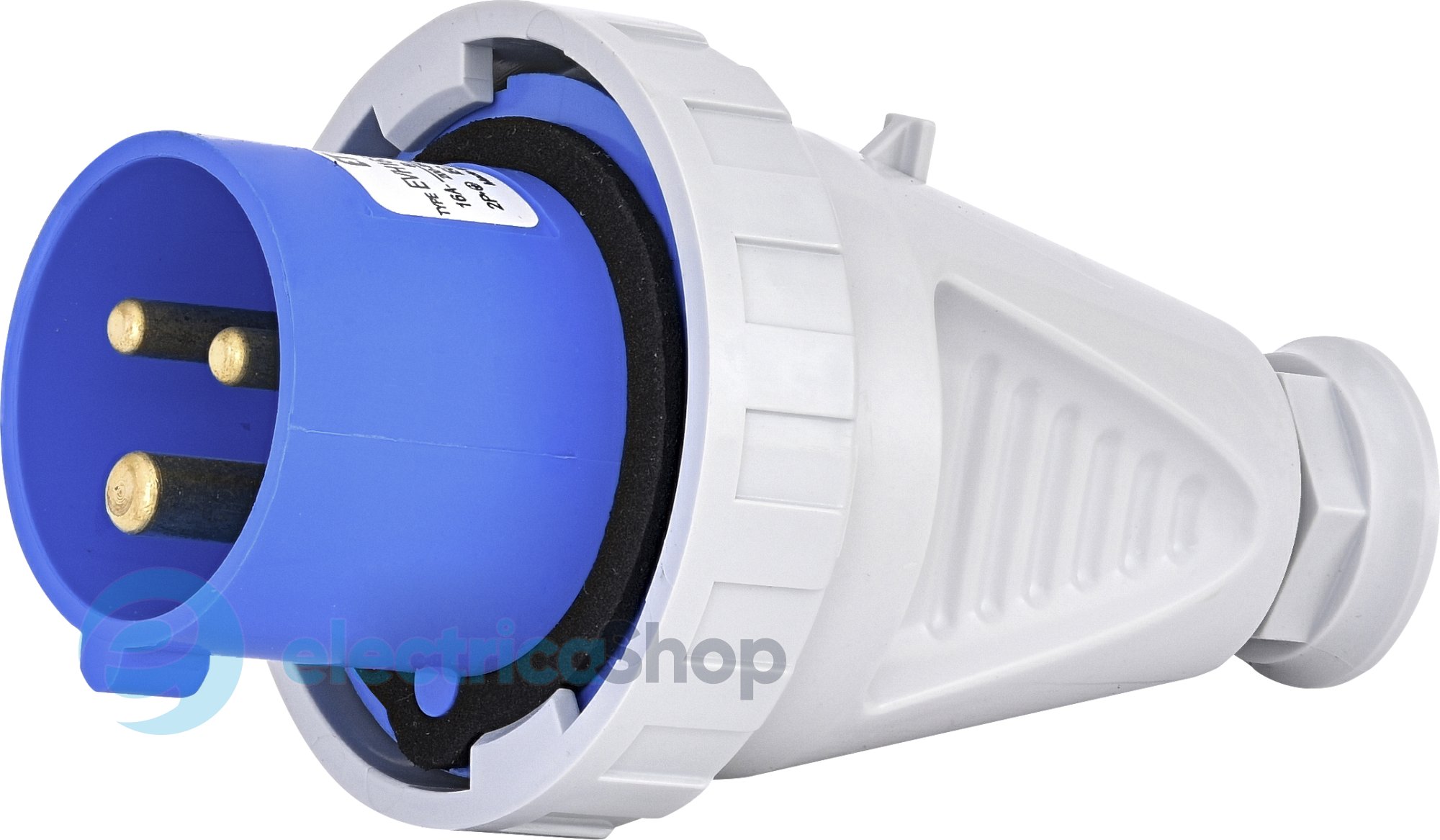 CEE Plug, EVH 1632, Ступінь захисту IP IP67, Кількість полюсів 2+PE, Номінальний струм (A) 16, Номінальна напруга (В) 230, Тип розетка вилка Вилка кабельна, Максимальна сила струму 16 A, Сила струму відповідно до UL / CSA (для UL-виконання) A, Кількість полюсів 2 , Напруга відповідно до EN 60309-2 і колір 230 В (50+60 Гц) синя , Положення ключа в годинах / Орієнтація заземл. контакту (по цифербл. годинника) 6 h, Маркувальне забарвлення Синій , Номер кольору Ral , Фазоінвертор , Ступінь захисту IP IP67 , Спосіб підключення Гвинтова клема , Кабельний ввід Ущільнювальна гайка , Кут підключення Прямолінійний (-а) , Матеріал Пластик