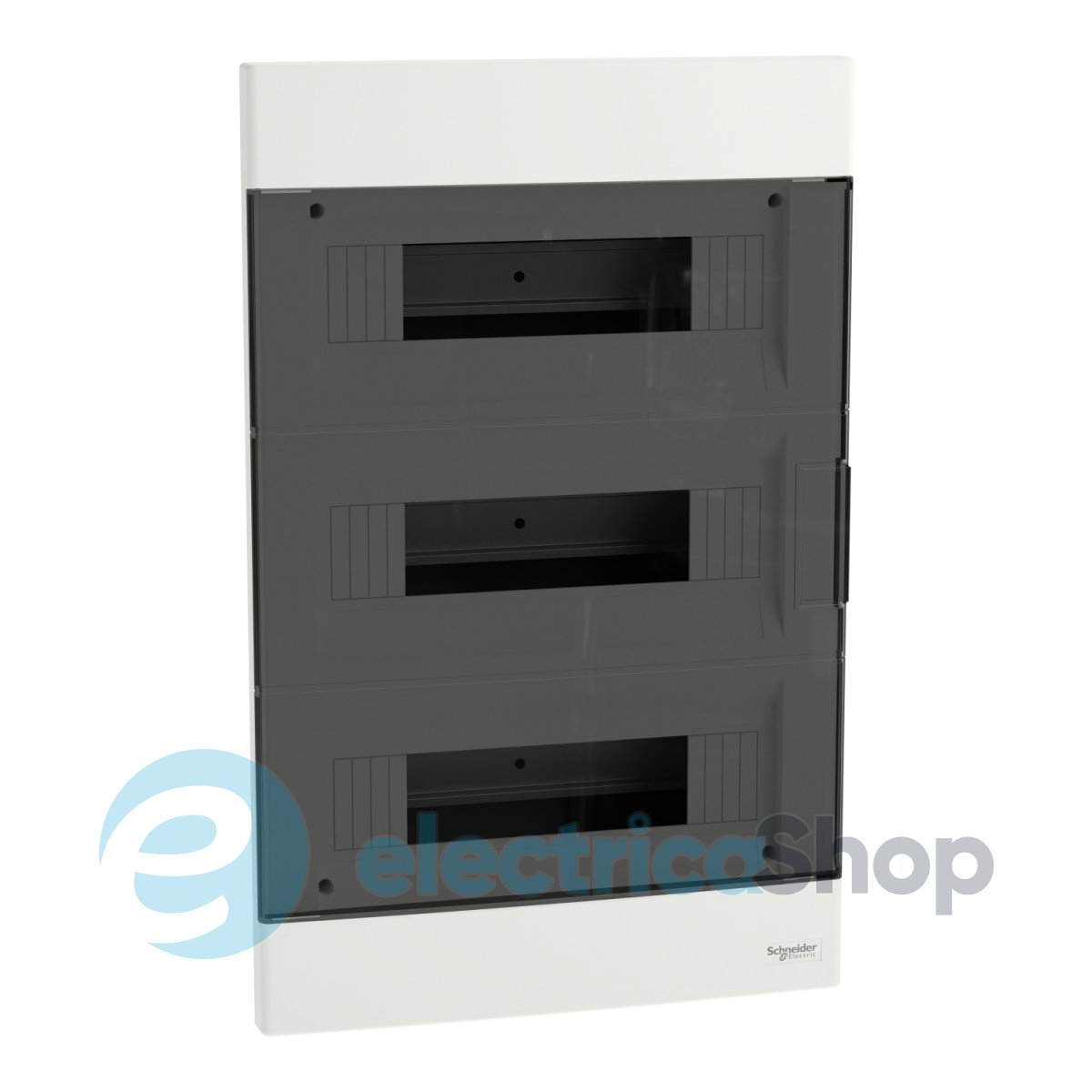 - Встраиваемый щит Easy9 EZ9EUC312 Шнайдер Электрик комплектуется прозрачной дымчатой дверью с углом открытия 180 градусов с возможностью изменения стороны открытия.