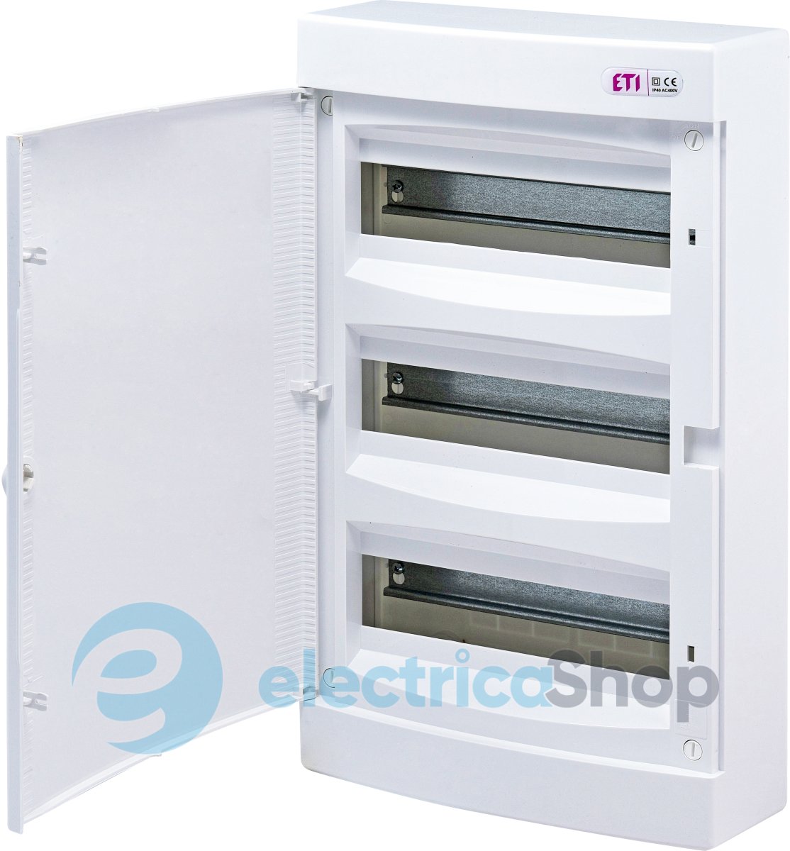 Распределительный щит навесного монтажа ECT 36 PO (код 1101009) применяются в жилищном и промышленном строительстве для монтажа защитных, сигнальных и распределительных устройств модульного исполнения и обеспечивают степень защиты IP40.