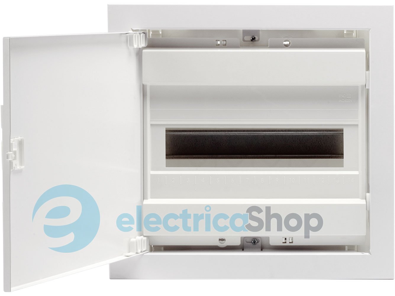 Распределительный щит ECG14PO ETI поставляется с белой пластиковой дверцей.