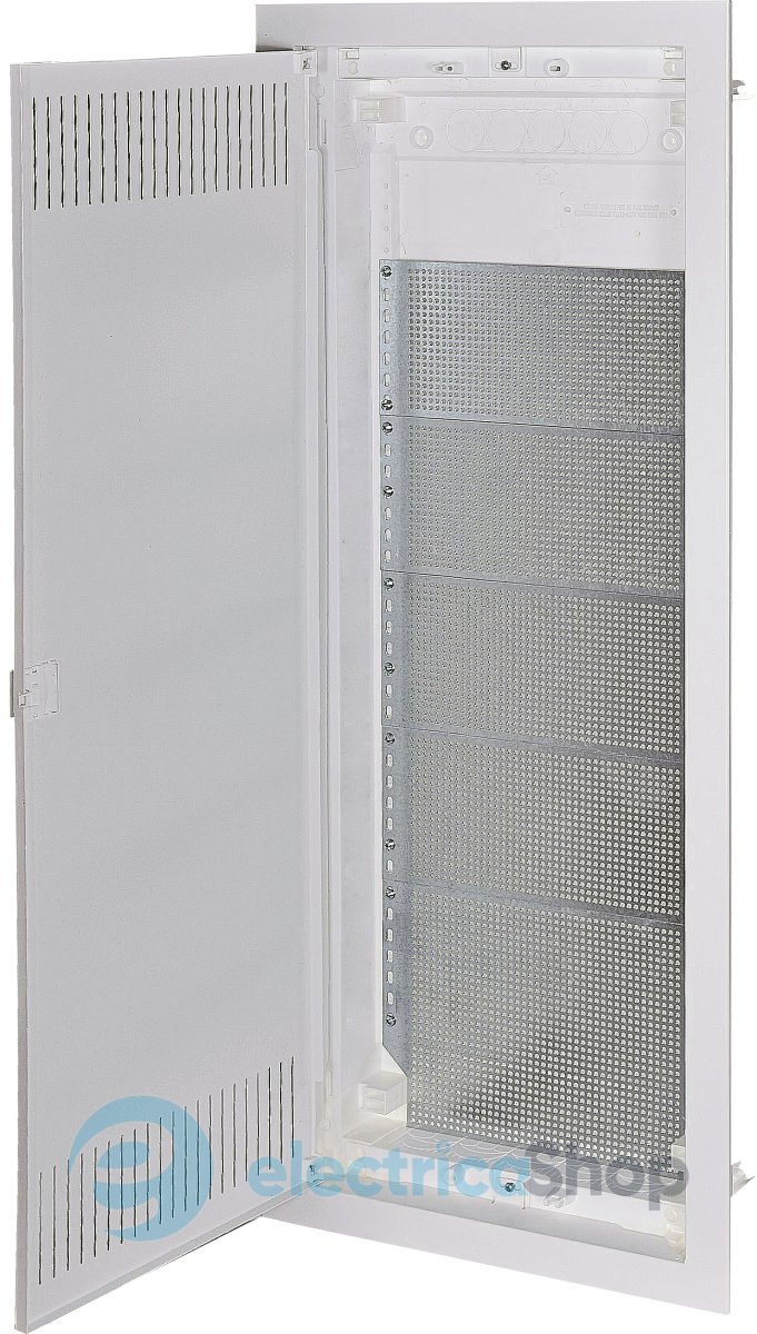 Щит ECG70 MEDIA-I 1101179 комплектуется перфорированными монтажными панелями и кронштейнами для установки в гипсокартон. Щит поставляется с перфорированной белой металлической дверцей.Особенности: