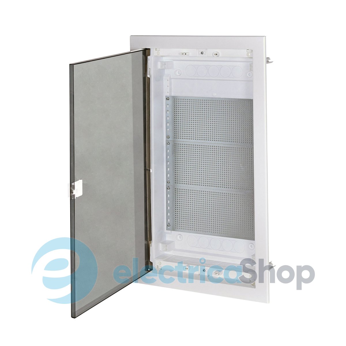 Щит ECG42 MEDIA-PT 1101188 комплектуется перфорированными монтажными панелями и кронштейнами для установки в гипсокартон. Щит поставляется с перфорированнойпрозрачной пластиковой дверцей.Особенности: