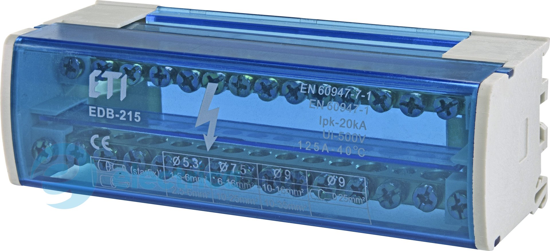 Распределительные блоки EDB ETI используются как соединительные элементы проводников нейтрали «N», заземляющих или отходящих от линий проводников «PE».
