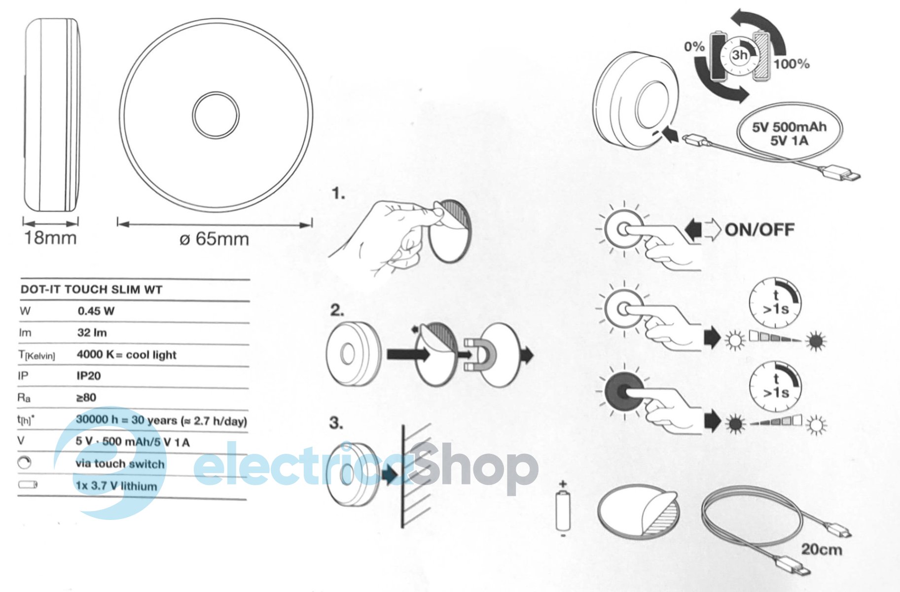 Светильник-ночник с аккумулятором LEDVANCE DOT-it TOUCH Slim White 4058075399686 легко перемещается туда, где нужен свет, благодаря автономной работе. Экономия энергии до 50% по сравнению с обычными светильниками. Крепится на различные поверхности и снимается благодаря магнитному креплению. Заряжается через USB-кабель. Имеет функцию плавного димления с сенсорной панели управления.