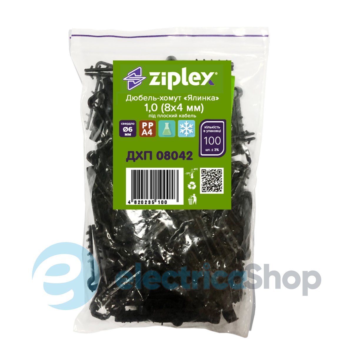 Дюбель-хомут «Елка» плоский 8x4 черный Ziplex™ – это разновидность специфического пластикового кабельного крепления для плоского кабеля или провода.