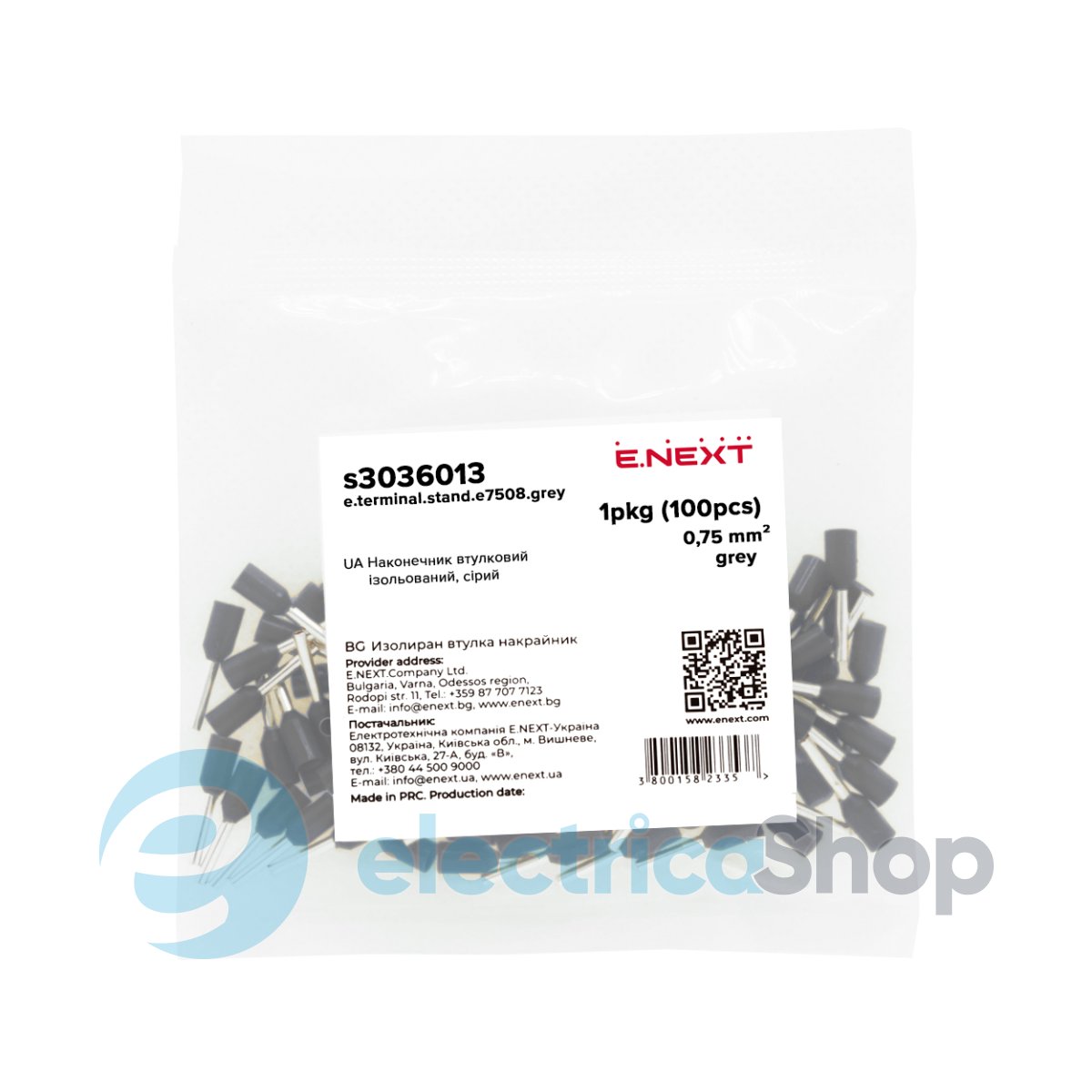 Изолированные втулочный наконечник e.terminal.stand.e7508.grey предназначен для обжима медных многожильных проводов и кабелей и присоединения их к электротехническому оборудованию.