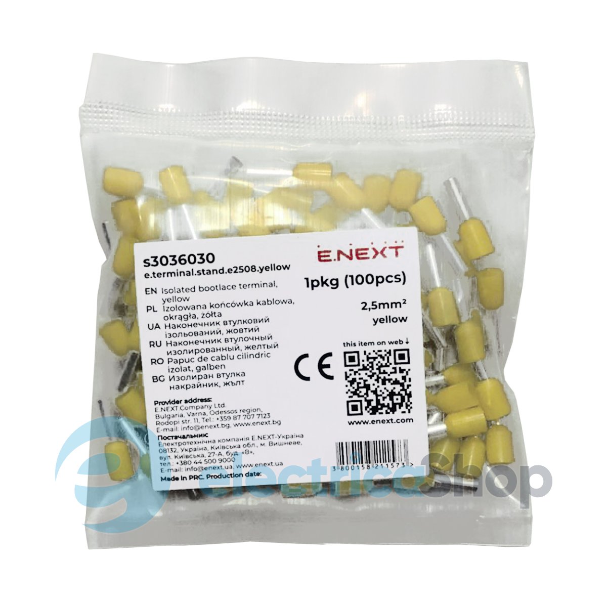 Изолированные втулочный наконечник e.terminal.stand.e2508.yellow предназначен для обжима медных многожильных проводов и кабелей и присоединения их к электротехническому оборудованию.