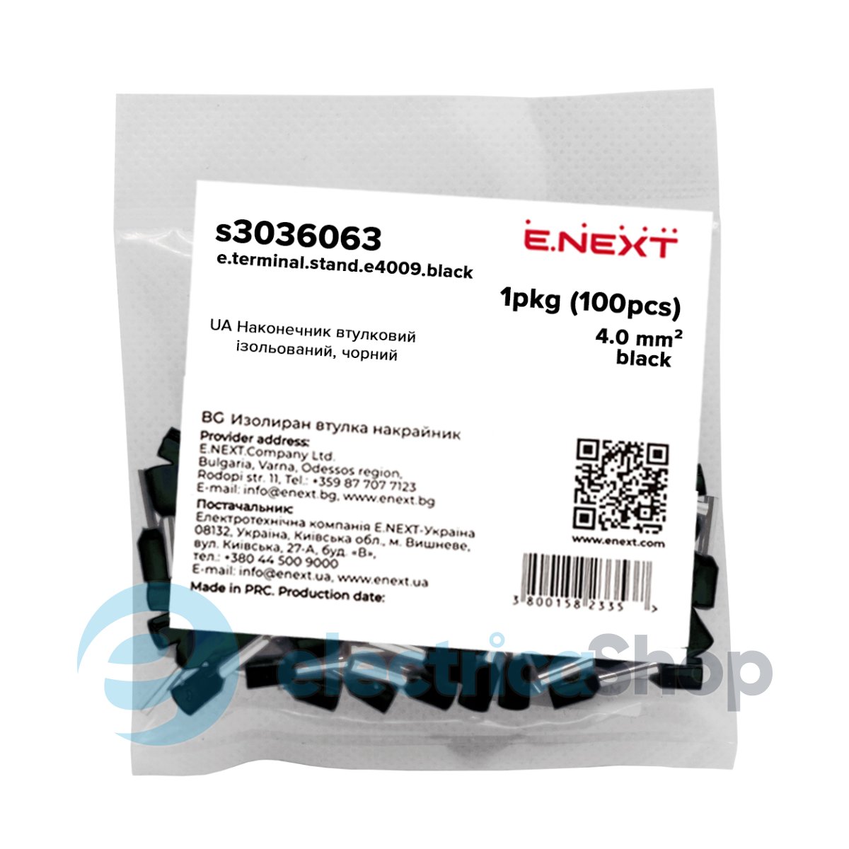Изолированные втулочный наконечник e.terminal.stand.e4009.black предназначен для обжима медных многожильных проводов и кабелей и присоединения их к электротехническому оборудованию.
