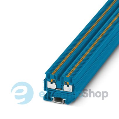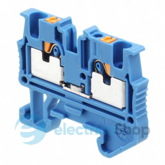 Мини-клеммная колодка проходная, номинальное напряжение: 500 В, номинальный ток: 17,5 А, количество соединений: 2, способ соединения: зажимное соединение, 1 уровень, номинальное сечение: 1,5 мм², сечение: 0,14 мм² - 1,5 мм², тип монтажа: NS 15, цвет: синий