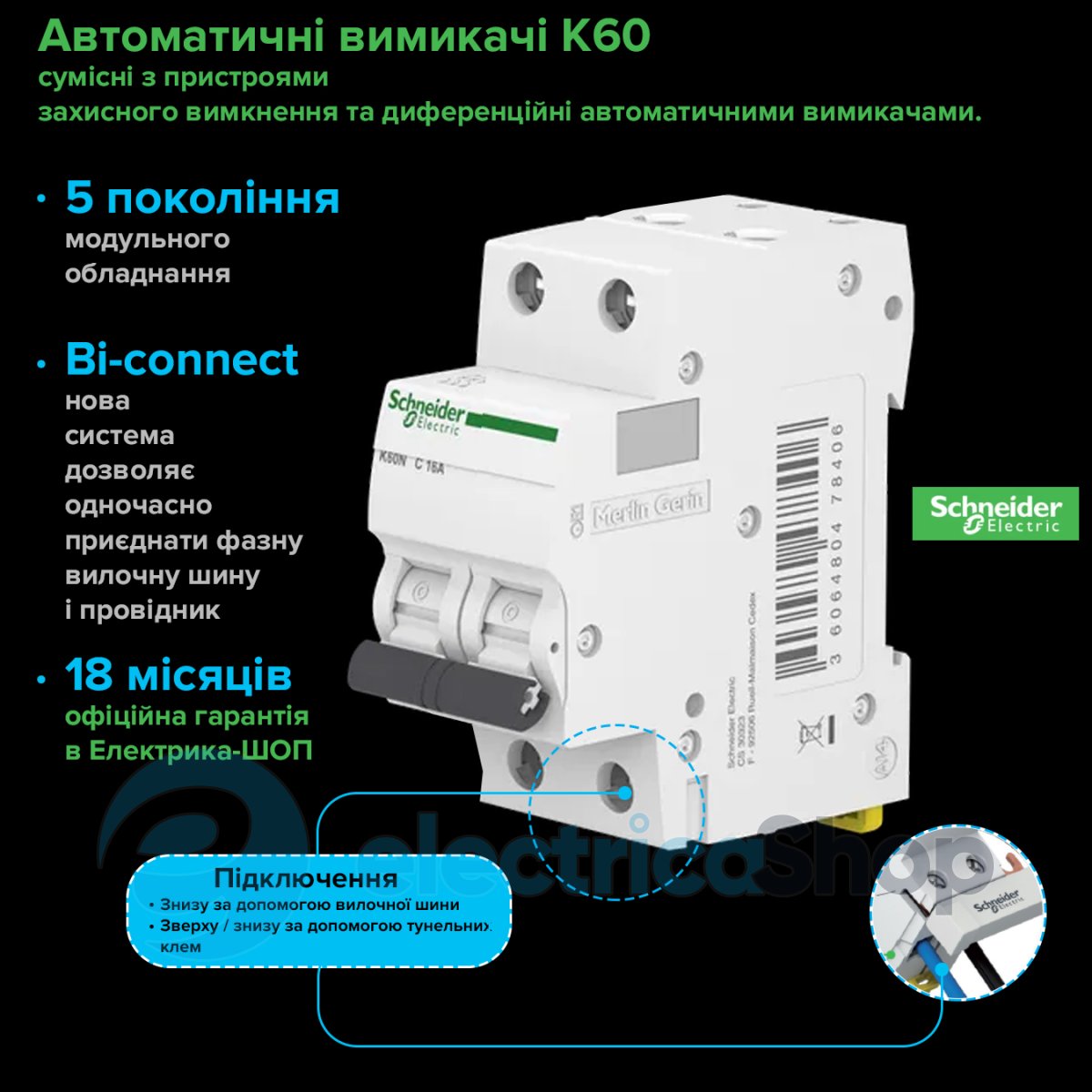 Однофазный двухполюсный автоматический выключатель серии K60N (Acti9) – A9K01263 .
