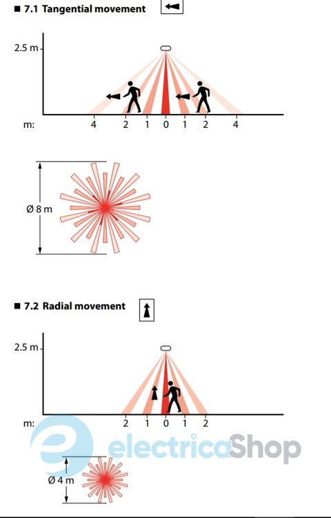 - Обнаружение: 360°, диапазон Ø8 м на высоте 2,5 м