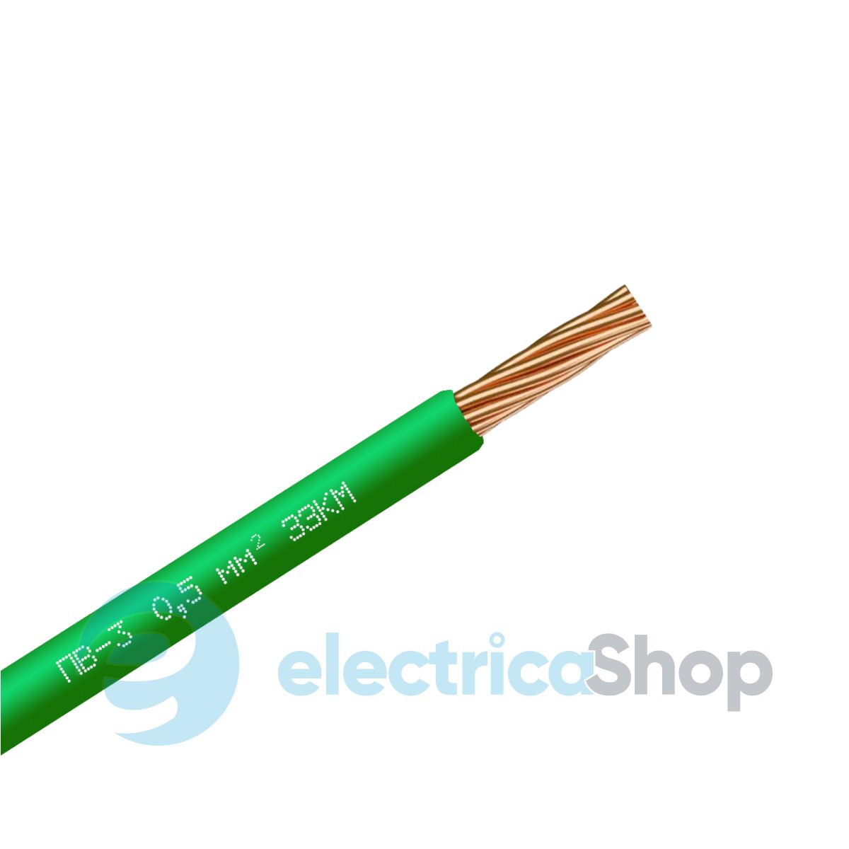 Одножильный монтажный кабель марки ПВ-3 (мнопроволочная медная жила) в изоляции из ПВХ зеленого цвета.