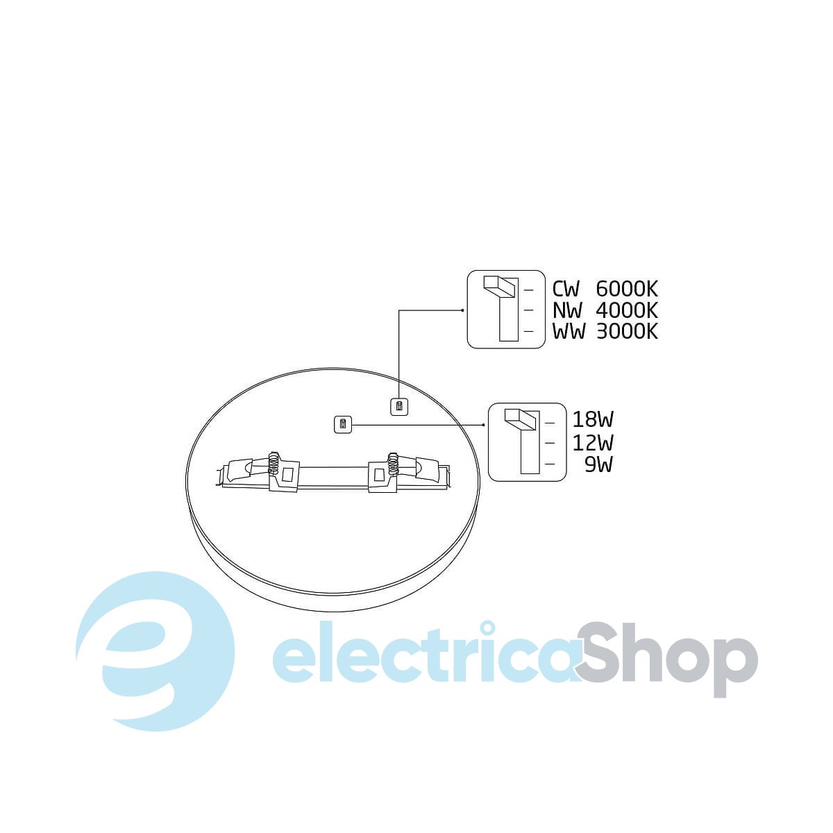- Мощность светильника, Вт: 9, 12, 18