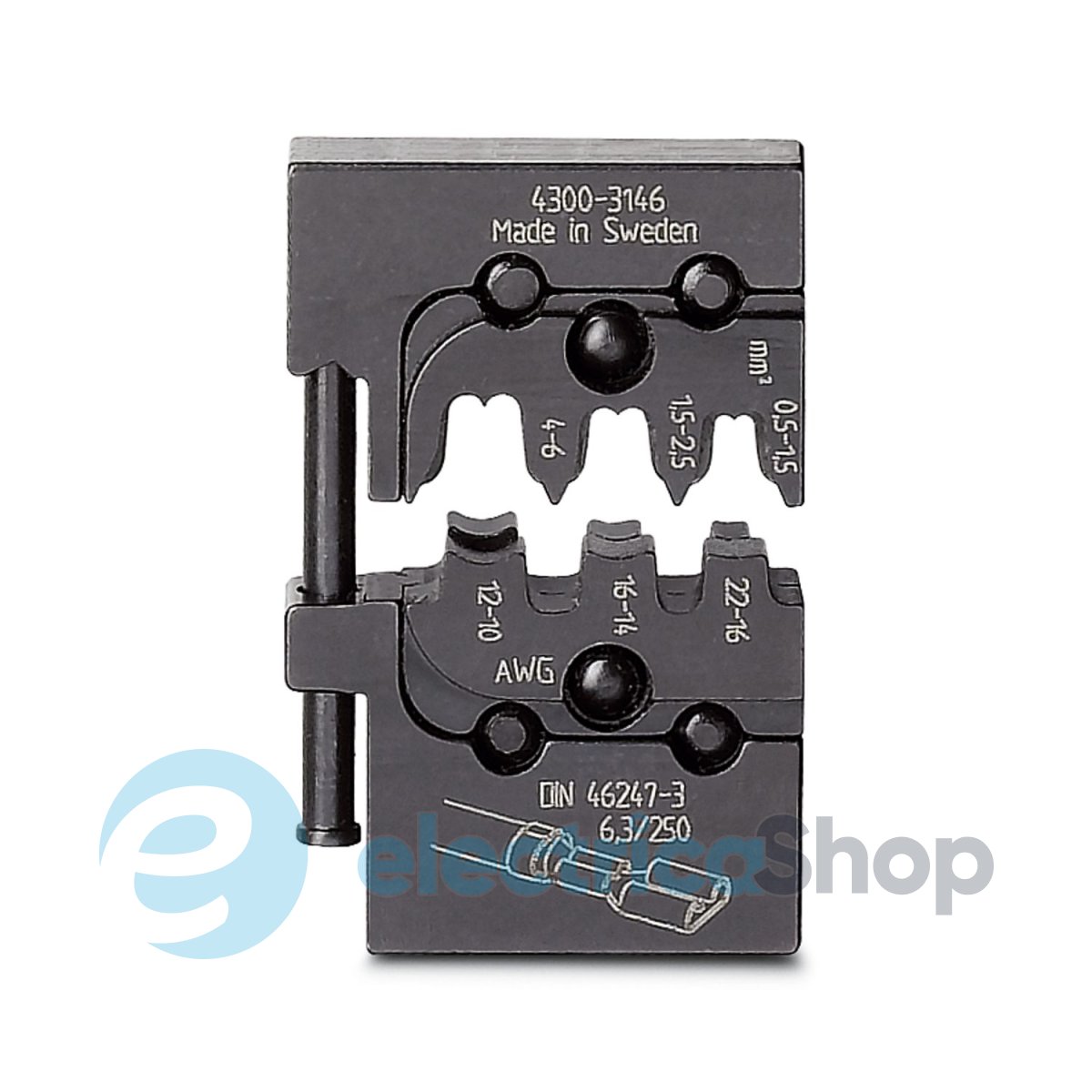 Матрица, для инструмента Crimpfox-M, для неизолированных гильз под плоский вывод 0,5 - 6 мм2, упаковываются в устанавливаемые в ряд коробки.