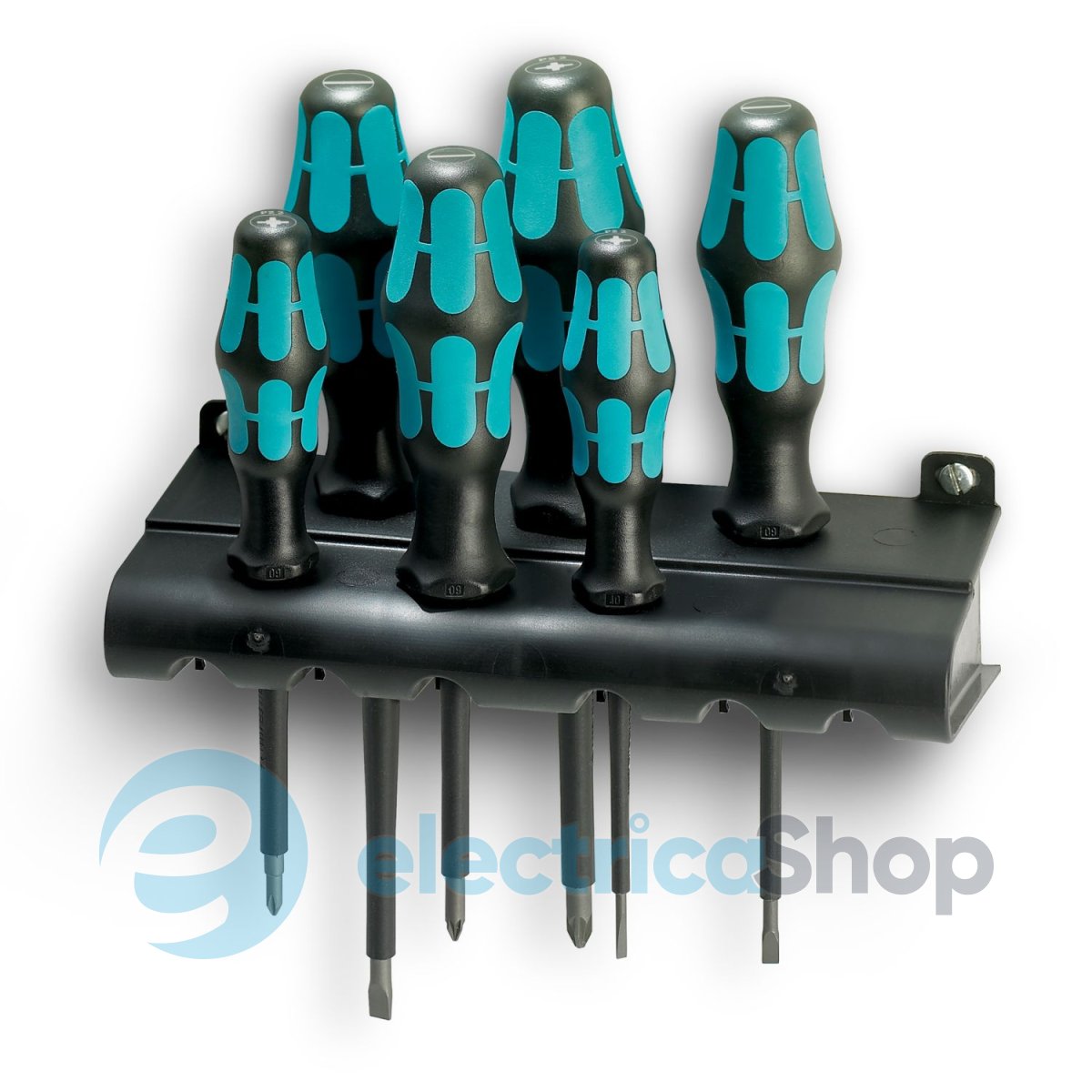 Набор отверток, плоская/крестовая Phillips Recess®, изолированная (стандарт VDE), 6 частей, вкл. rack