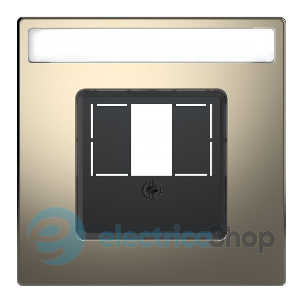 Металлическая центральная плата для TAE/Audio/USB с полем для надписи. Служит лицевой накладкой для механизмов розеток информационных, акустических или розеток USB скрытого монтажа.