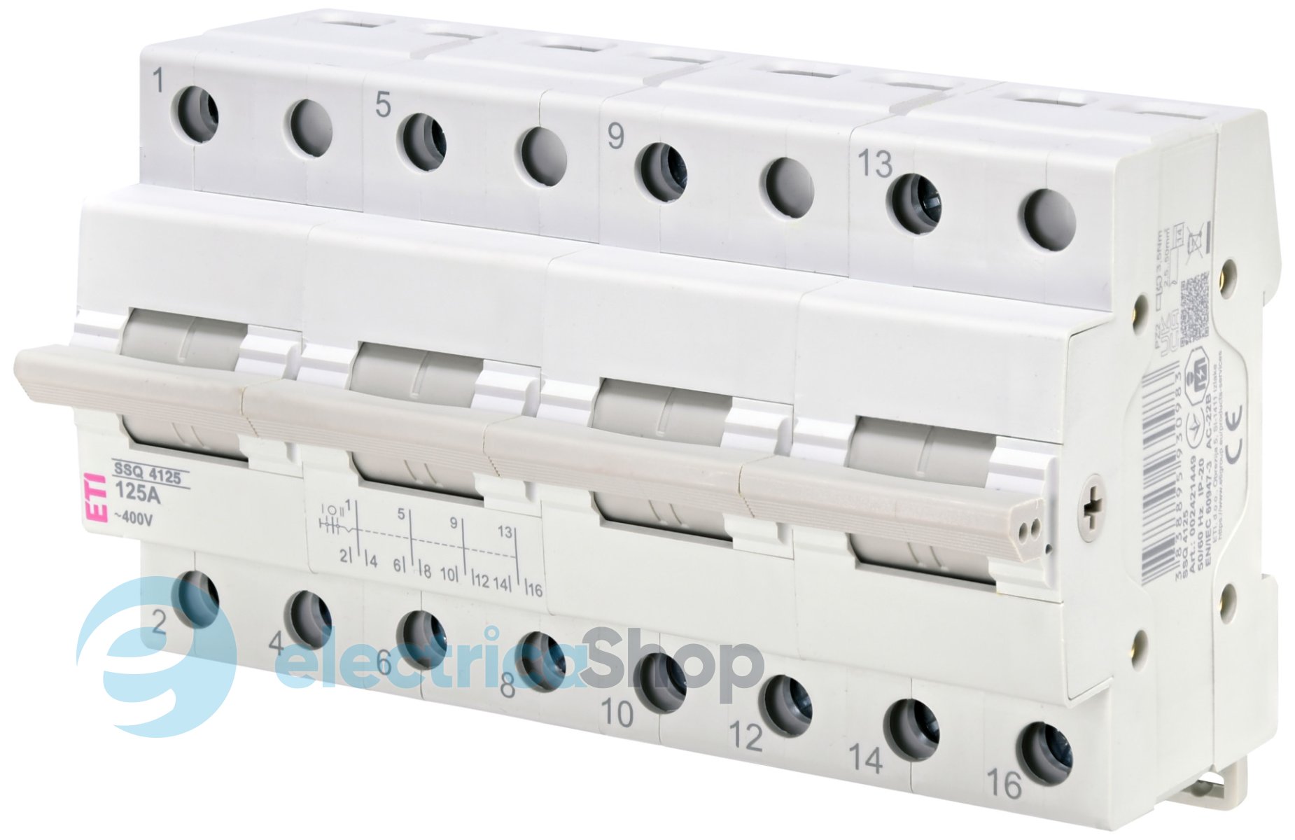 Переключатель SSQ 2421449 (это четырехполюсный перекидной рубильник) предназначен для прямой коммутации нагрузок небольшой мощности (125A ), либо коммутации с помощью дополнительных контакторов или силовых реле.