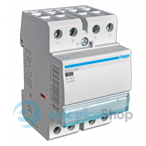 — Для уменьшения взаимного теплового влияния контакторов, установленных в ряд один за другим, рекомендуется использовать проставку LZ060.Технические характеристики контактора Hager ESC42 :