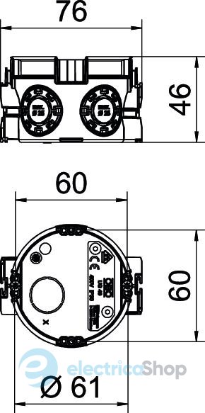 Скрытая розетка для приборов с дополнительным пространством для клемм для использования в кирпичной кладке с монтажной глубиной не менее 46мм.