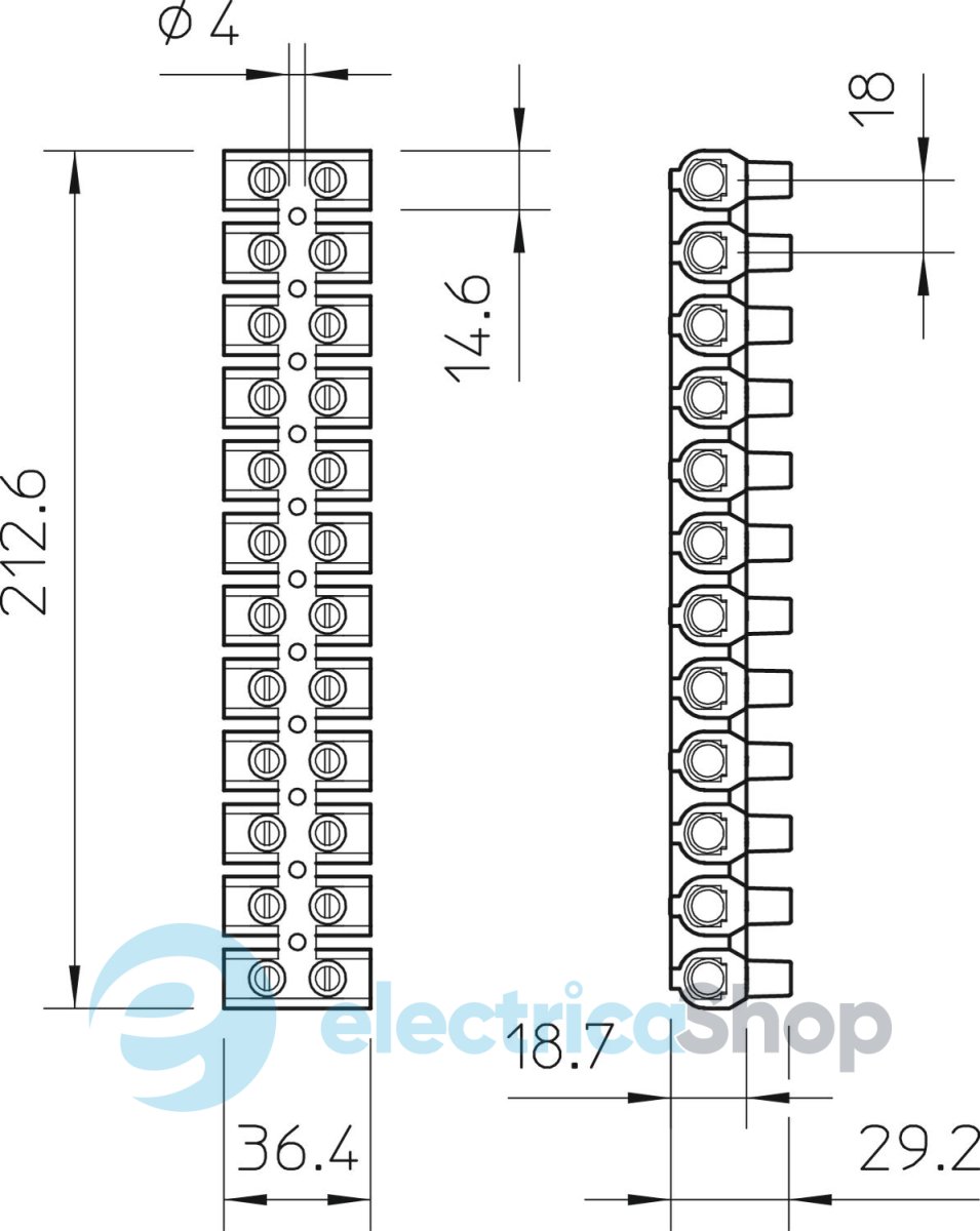 Латунные зажимы, стальные винты, гальваническая оцинковка, 12 контактов, клеммная колодка разделяется на отдельные клеммы.