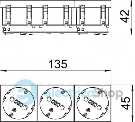 - Розетки 220V~: Силовые 220 V~ выход под 33°