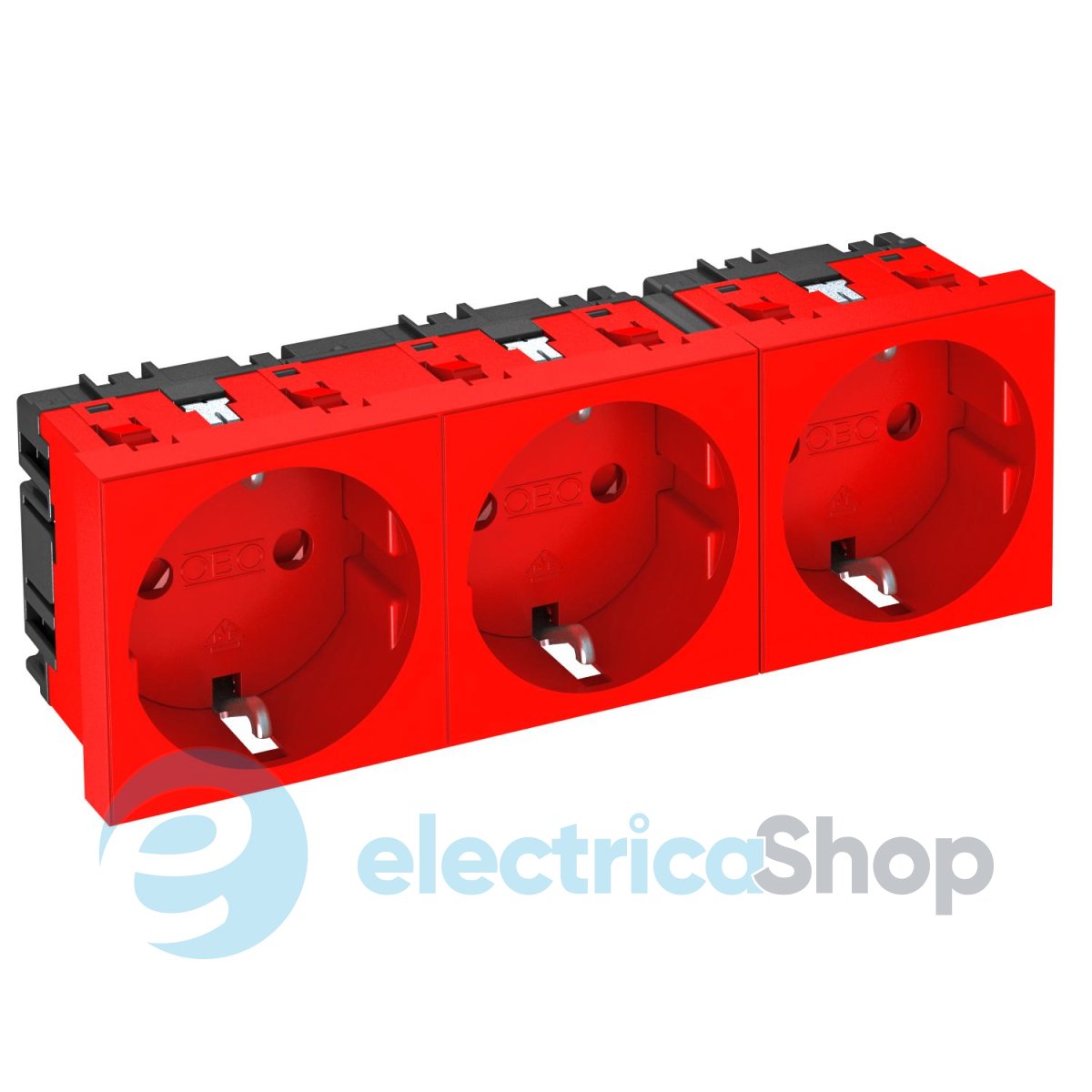 Розетка с контактом заземления, тройная 0°, с повышенной защитой от прикосновения, с безвинтовыми клеммами, 2-полюсная, 16 А, 250 В~, с клеммами для подключения согласно стандарту IEC 60884-1.