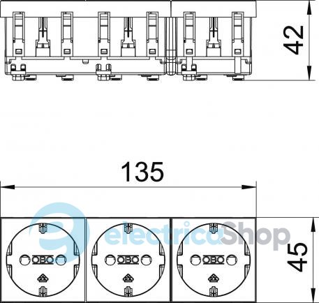 - Розетки 220V~: Силовые 220 V~ с З/К тройные
