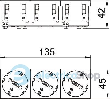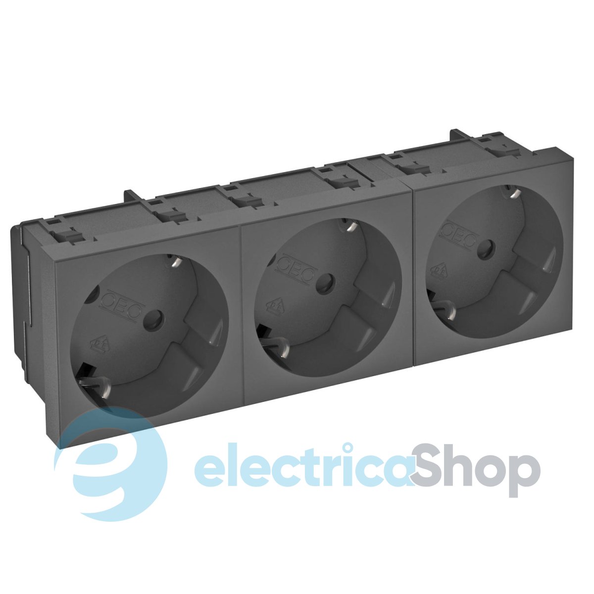 Розетка с контактом заземления 3х постовая, 33°, с повышенной защитой от соприкосновения, со вставными клеммами, 2-полюсная, 16 A, 250 вольт~, с соединительными клеммами в соответствии с IEC 60884-1.