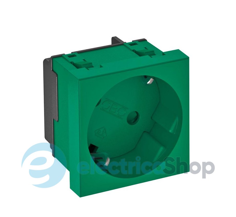 Розетка с контактом заземления Однопостовая, 33°, с повышенной защитой от соприкосновения, со вставными клеммами, 2-полюсная, 16 A, 250 вольт, с соединительными клеммами в соответствии с IEC 60884-1.