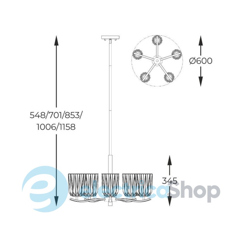 - Тип светильника: Люстра