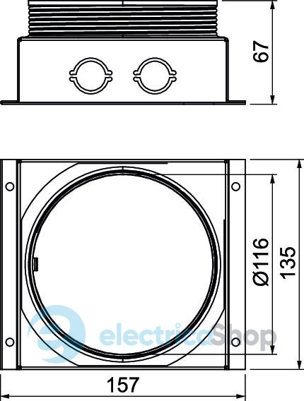 Монтажная коробка для установки розеточного люка GESRM2. С 2х2 отверстиями для монтажа труб M20 или Pg16.