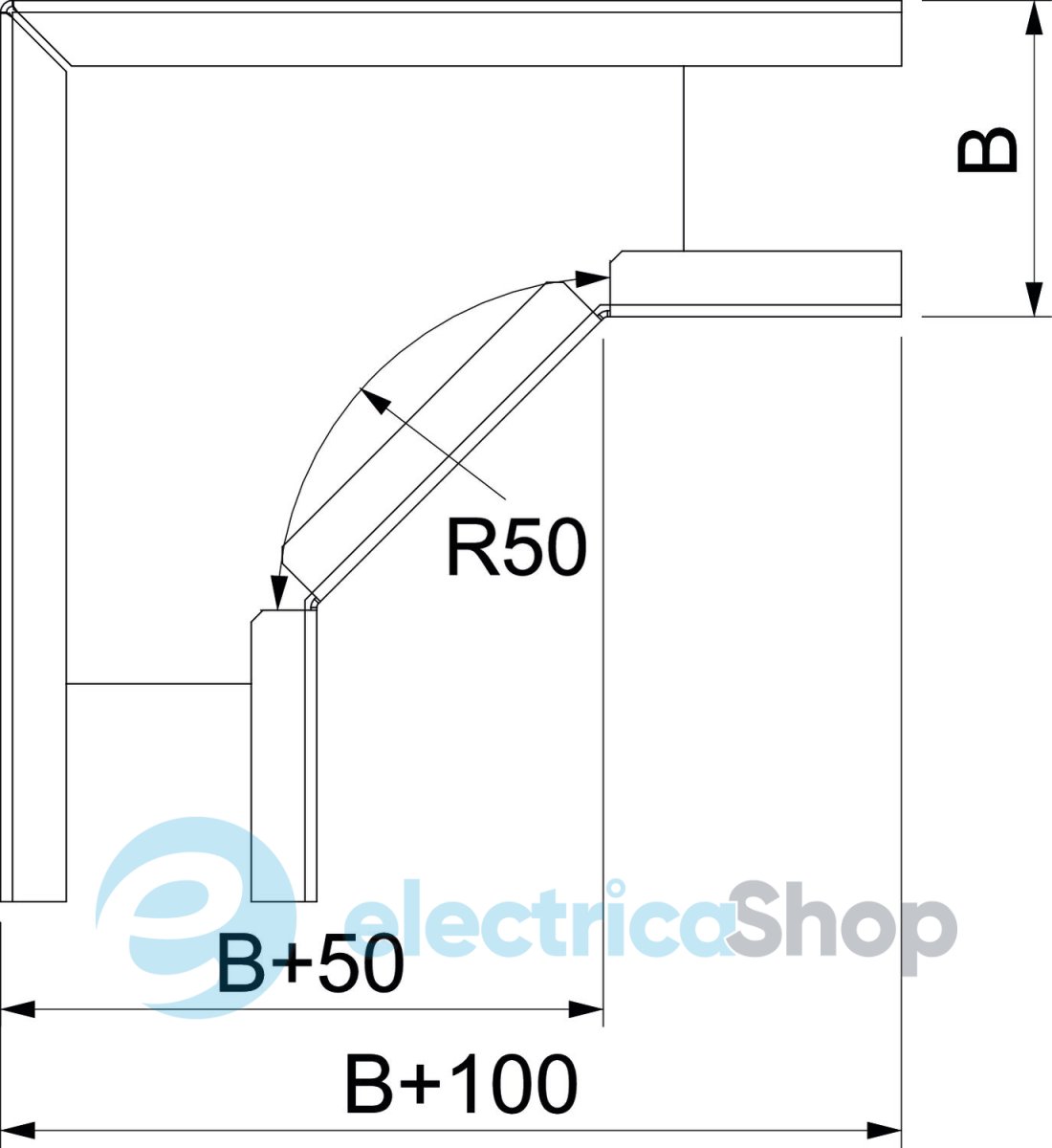 Угловая секция 90° для горизонтальной прокладки кабельных лотков типа RKS 605.