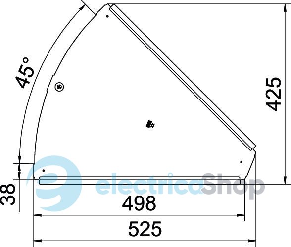 Крышка для фасонной детали 45° для защелкиваемых и привинчиваемых кабельных лотков, используемых внутри помещений, для защиты кабелей от повреждений и грязи. Крепление с помощью предварительно смонтированной задвижки и опорного элемента крышки участка. Подходит для любой высоты боковой стенки.