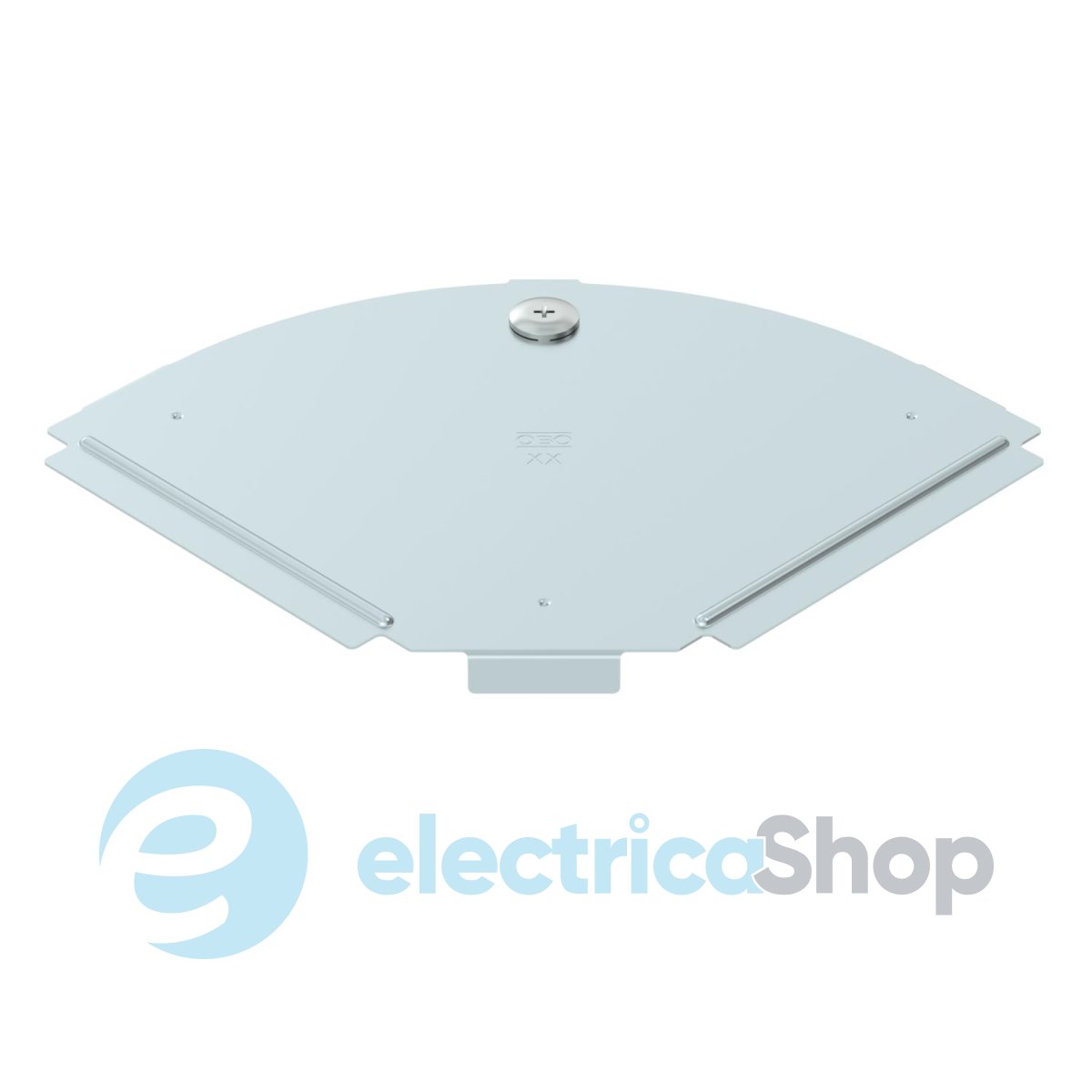 Крышка для фасонной детали 90° для защелкиваемых и привинчиваемых кабельных лотков, используемых внутри помещений, для защиты кабелей от повреждений и грязи. Крепление с помощью предварительно смонтированной задвижки и опорного элемента крышки участка. Подходит для любой высоты боковой стенки.