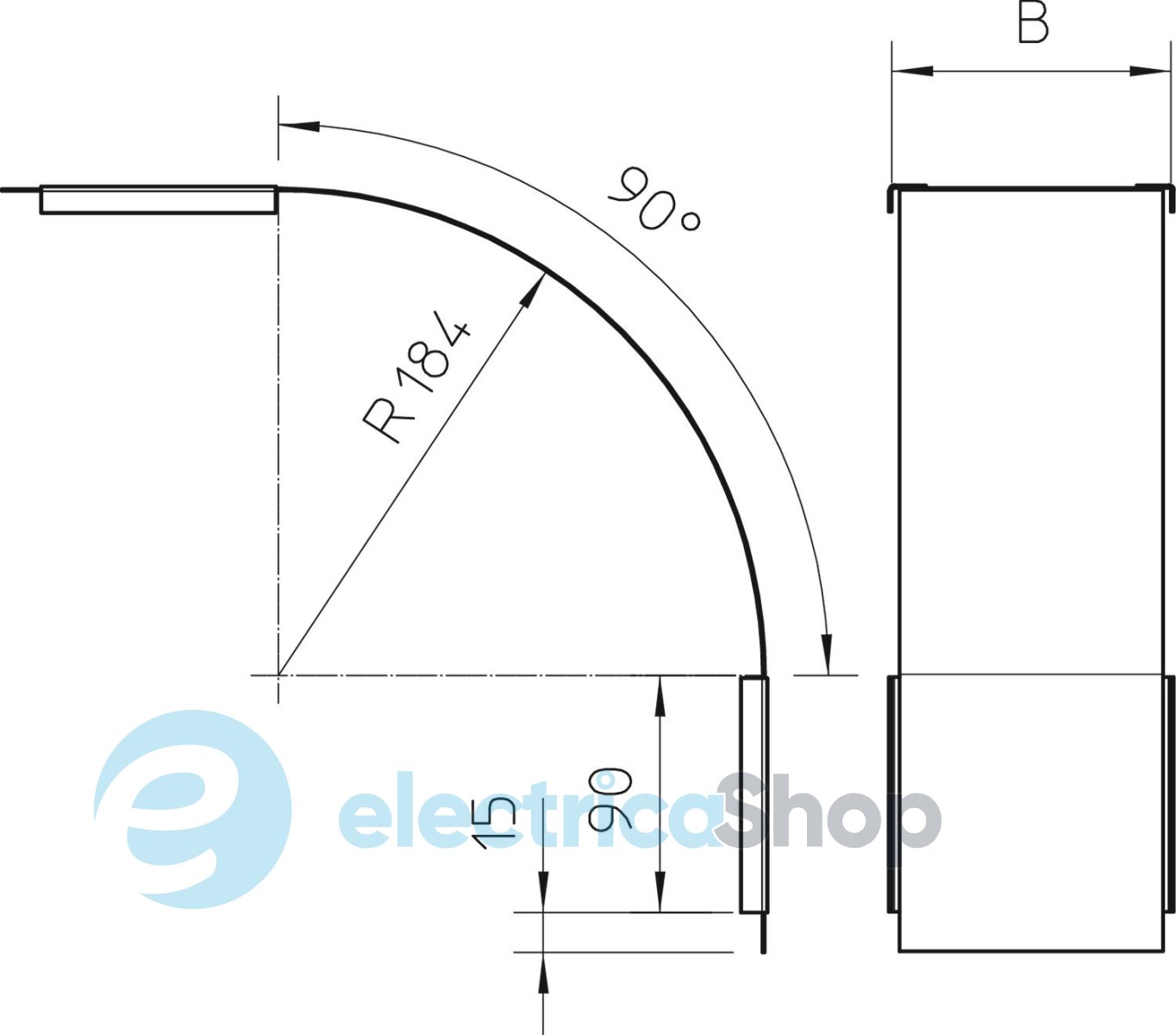 Крышка для нисходящих вертикальных угловых секций с высотой боковой стенки 60 мм.
