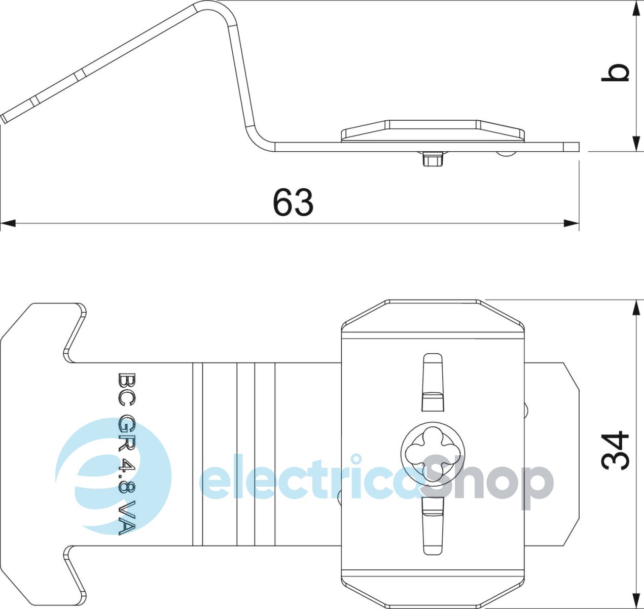 Крепежный скоба для безвинтового монтажа проволочных лотков на профильных рейках MS с шириной шлица 22 мм.