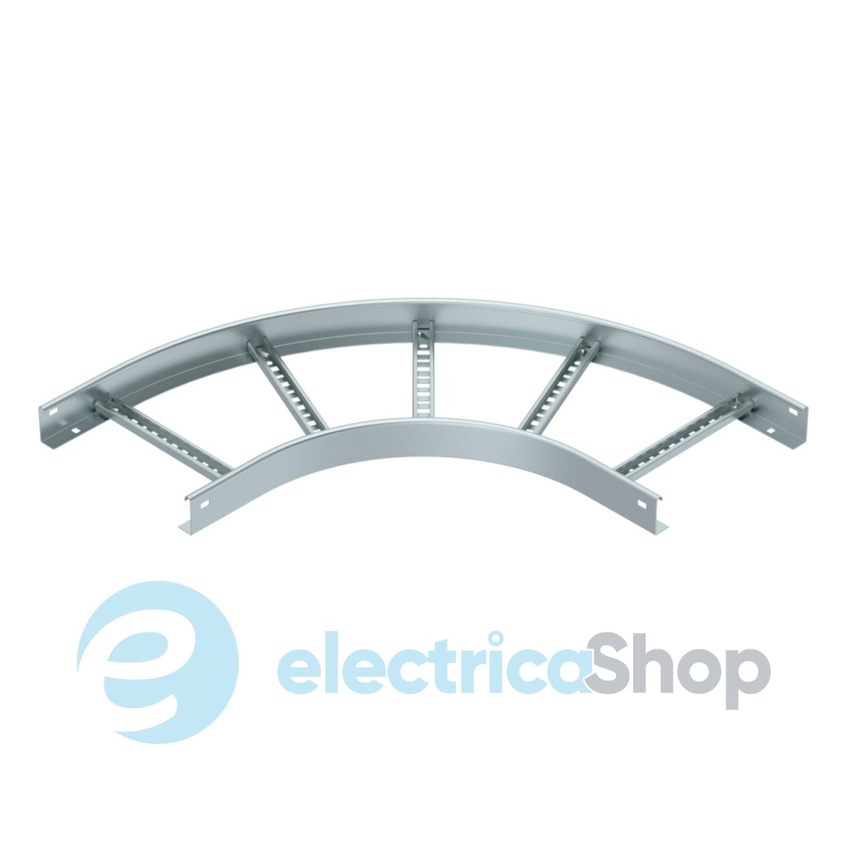 Горизонтальная угловая секция 90° с приваренной перекладиной для монтажа на любых кабельных лотках лестничного типа с боковыми стенками высотой 60 мм.